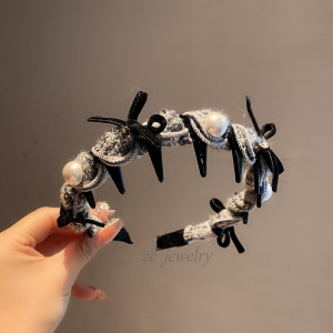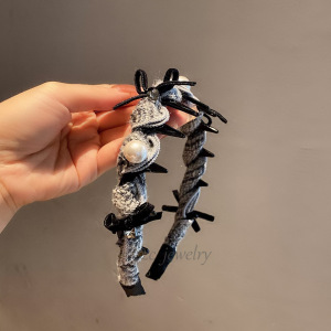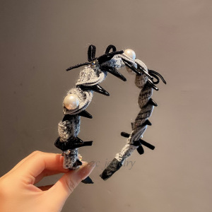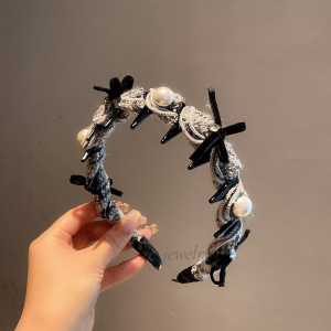 韩国东大门小香ins珍珠闪钻蝴蝶结发箍女时尚高颅顶外出百搭发卡
