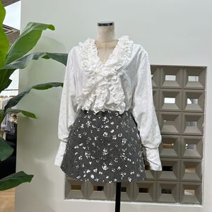 亚马逊潮流V领重工烫钻套头衬衫+刺绣珠片短裤裙时髦旅拍文艺风女