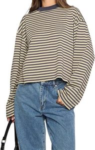 美式复古条纹慵懒风圆领长袖T恤女2025早秋新款宽松休闲上衣