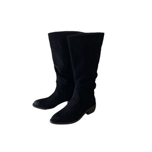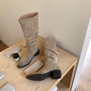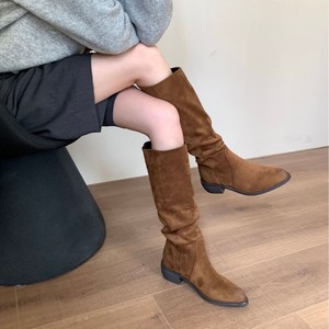 2025年秋冬新款复古擦色堆堆靴女长筒靴西部不过膝粗跟绒面骑士靴