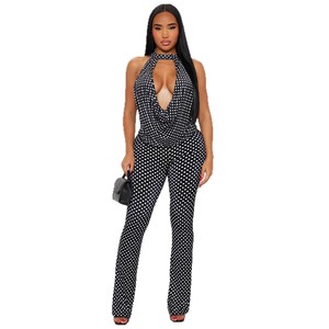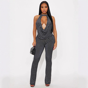 2025欧美跨境亚马逊爆款时尚女装斑点印花裹胸吊带两件套套装