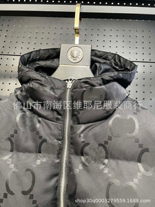 高品质 GU家满印暗纹提花字母互扣连帽羽绒服马甲秋冬百搭ins外套