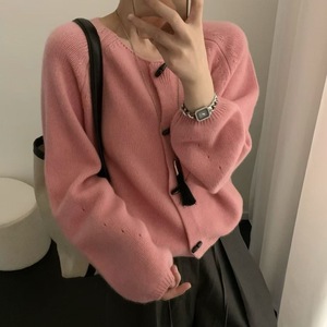 2025早秋新款时尚圆领牛角扣全羊毛开衫女宽松显瘦毛衣外套上衣潮