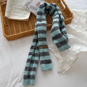 嘻哈小众时髦Y2k长条条纹皮标针织围巾男女日系百搭层次感围脖潮