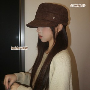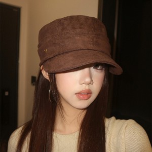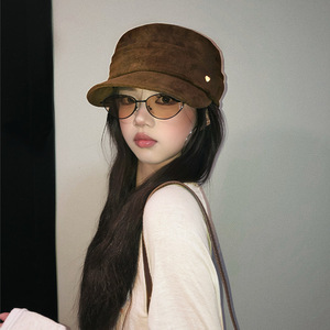 麂皮绒咖色平顶马术帽女春秋2025新款复古做旧休闲报童帽贝雷帽子
