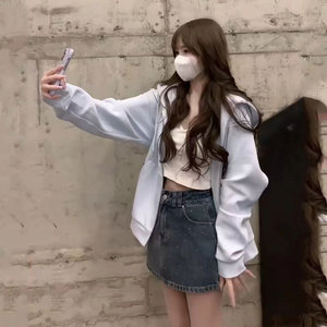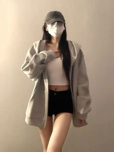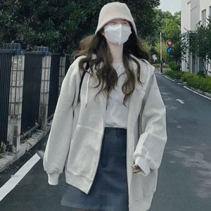 连帽卫衣女春秋oversize薄款拉链开衫外套宽松韩系慵懒chic风上衣