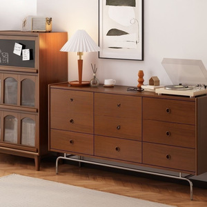 轻奢复古实木九斗柜中古实木客厅高级感抽屉柜置物柜一体复古斗柜