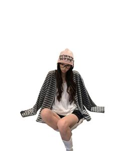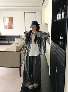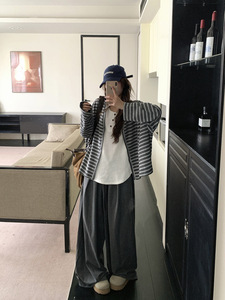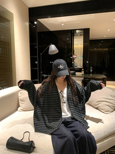 2025新款慵懒风条纹长袖外套女装秋季复古盐系宽松单排扣开衫上衣