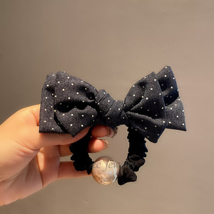 秋冬新款蝴蝶结波点发圈头绳轻奢甜美少女发饰皮筋马尾后脑勺发绳