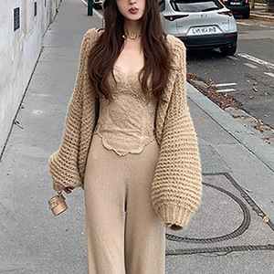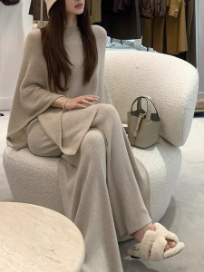 秋冬万搭王好版型垂坠羊毛针织懒懒裤显瘦宽松直筒裤女小个子裤子