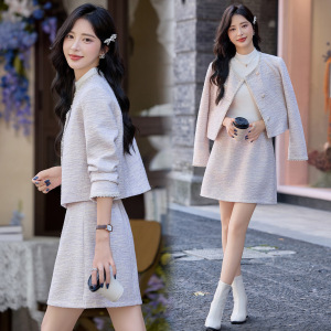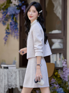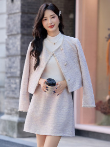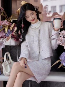 高级感小香风套装女2025秋新款复古钉珠气质外套半身裙两件套ZQ08