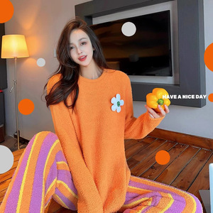 半边绒睡衣女秋冬季新款加绒加厚韩版可爱休闲宽松保暖家居服套装
