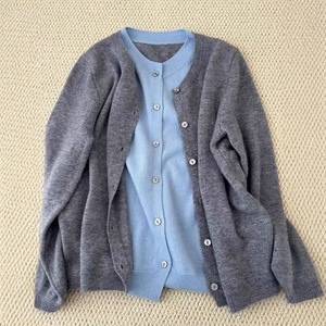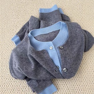 撞色拼接毛衣外套2025秋冬叠穿针织开衫外搭修身假两件打底衫上衣