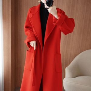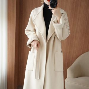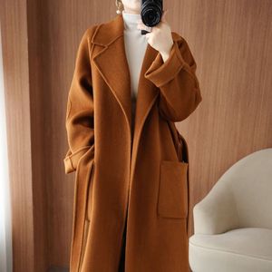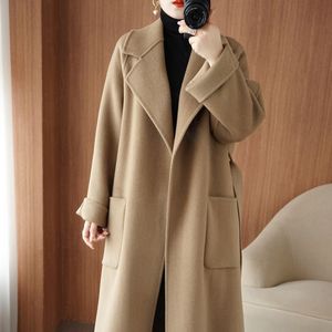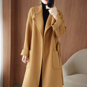 羊毛双面呢羊毛大衣女长款法式赫本风大衣冬宽松加厚毛呢外套