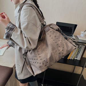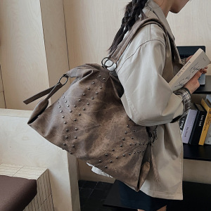 高级感时尚铆钉包包女2025新款大容量休闲百搭单肩手提通勤托特包