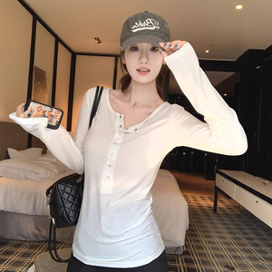 韩系慵懒风白色T恤女秋冬季新款休闲修身显瘦内搭打底衫长袖上衣