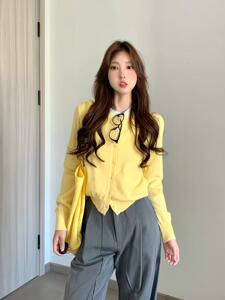 秋季假两件早秋穿搭慵懒风针织开衫毛衣外套女软糯韩系撞色上衣