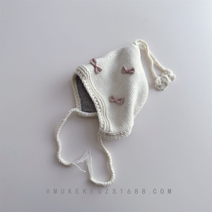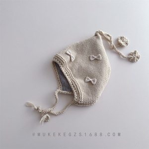 韩版儿童针织护耳帽 秋冬甜美蝴蝶结流苏帽宝宝加里布保暖毛线帽
