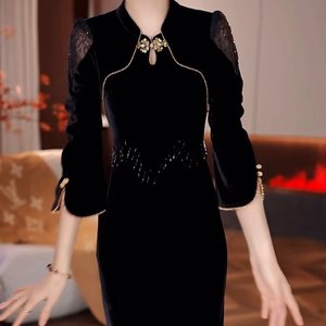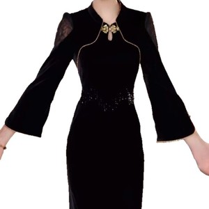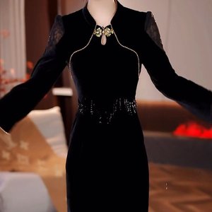 一件代发2025秋季新款时尚改良版气质旗袍女装七分袖国风旗袍裙子