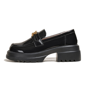 英伦风厚底乐福鞋女2025秋季新款凯旋门小皮鞋一脚蹬粗跟单鞋