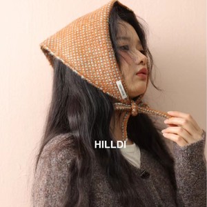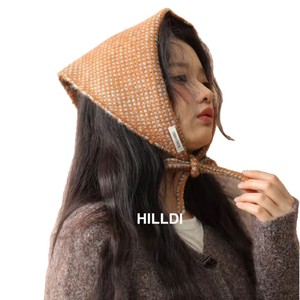 韩系针织华夫格三角巾女冬季保暖头巾氛围感系带披肩发带