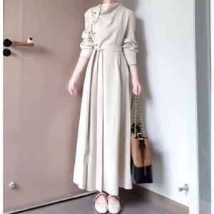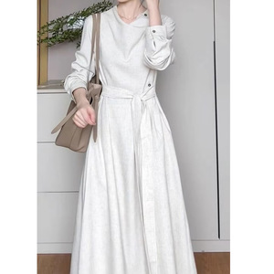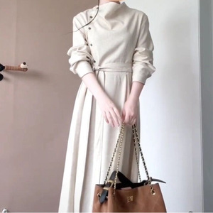 设计暮云归高级感长袖斜门襟连衣裙女秋知识分子风收腰裙 2025秋