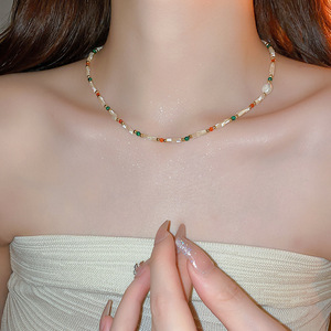 晗珞~亚克力彩色爱心项链甜美时尚气质锁骨链设计感小众项饰批发