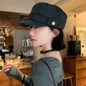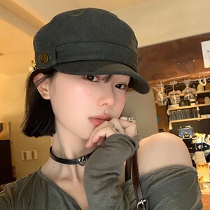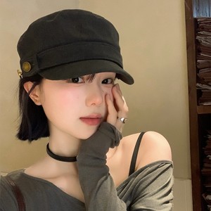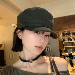 美式复古平顶贝雷帽女2025新款做旧水洗文艺百搭显脸小鸭舌帽子潮