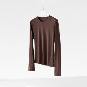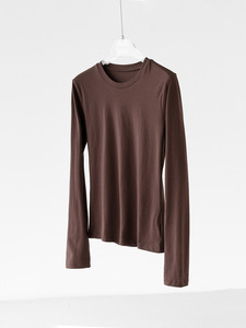 渠道!剪标出!匹马棉 百搭纯色圆领长袖T恤打底衫女秋新G091820