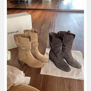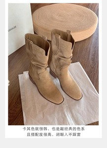 复古西部牛仔靴堆堆靴女2025年秋冬新款内增高粗跟显瘦增高马丁靴