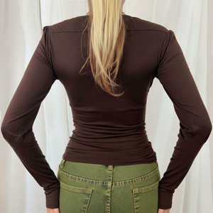 2025秋季纯欲温柔风坎肩蝴蝶结设计方领长袖打底衫基础款纯色T恤