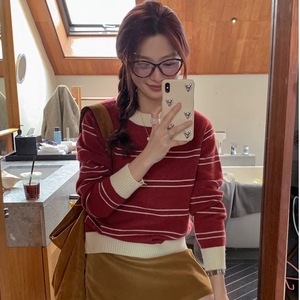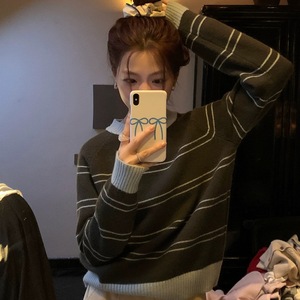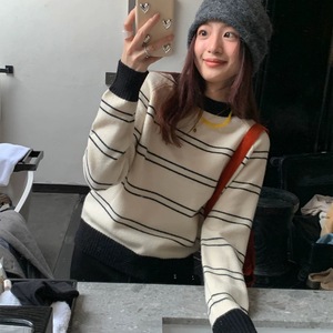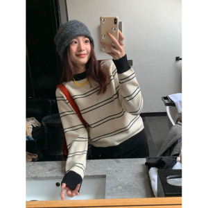 韩系条纹软糯秋冬小个子女冬季打底毛衣百搭复古套头针织内搭外穿