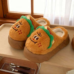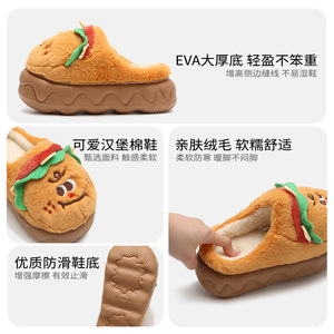 ins可爱汉堡棉拖鞋女士厚底舒适学生居家舒适毛毛鞋趣味月子鞋冬