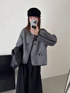 小香风毛呢外套女欧洲站2025年秋季新款韩版双排扣显瘦时尚上衣潮