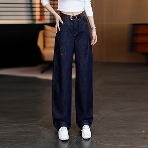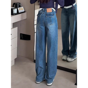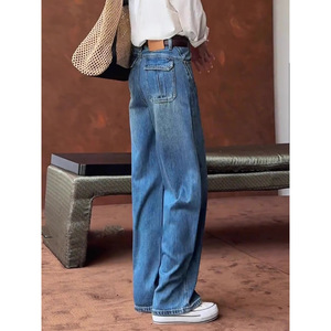 美式复古弯刀牛仔阔腿裤女秋季2025新款水洗做旧窄版显瘦直筒长裤