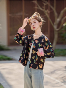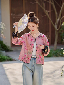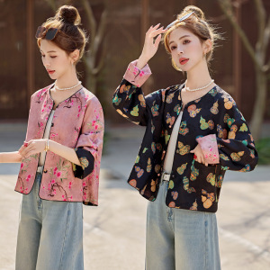 新中式国风外套女春秋25新款小个子独特好看缎面双面穿唐装上衣潮