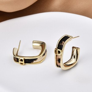 秋冬新款时髦气质猪鼻子豹纹耳钉耳环轻奢高级感气质个性百搭耳饰