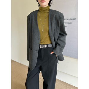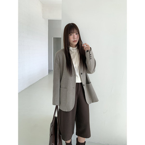 MMC DITION毛呢西装外套女秋冬新款v领垫肩高级感羊毛休闲小西服