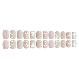 跨境短款粉色圣诞节姜饼人雪花按压式假指甲可拆卸美甲片成品批发