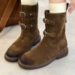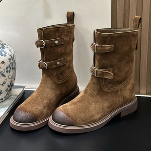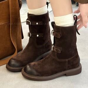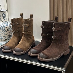 羊皮版~复古擦色皮带扣西部牛仔靴显瘦短靴女美拉德马丁靴机车靴