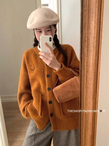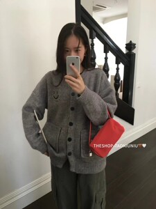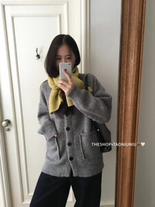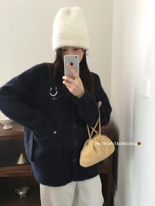 韩系圆领毛衣外套女装秋冬新款慵懒风宽松百搭双口袋针织开衫上衣