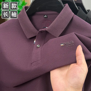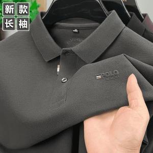 抖音爆款秋季新款男士翻领长袖Polo衫纯色宽松休闲百搭打底T恤衫