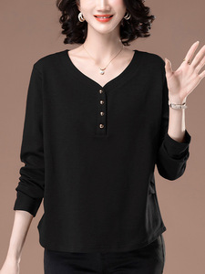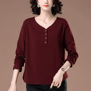 中长款v领t恤女长袖百搭春秋薄款打底衫韩版妈妈大码宽松遮肚上衣