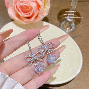 S925银针百搭蝴蝶结锆石耳环女轻奢简约耳钉个性百搭气质超仙耳扣