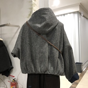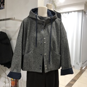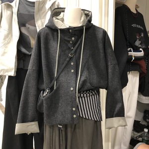 撞色连帽单排扣毛呢外套女2025秋季新款韩版宽松休闲上衣潮ZM6631