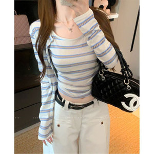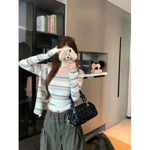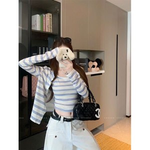 晨领【原版品质】韩版气质条纹内搭吊带背心新款气质长袖开衫两件