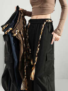 藏青色弯刀工装裤女秋季新款高腰显瘦束脚休闲冲锋裤多口袋长裤子