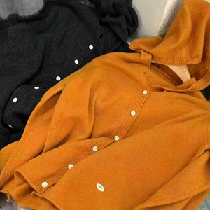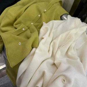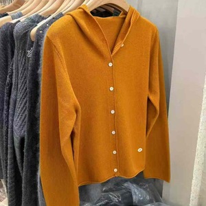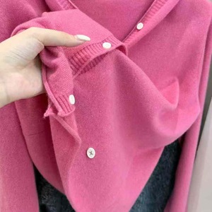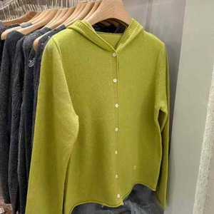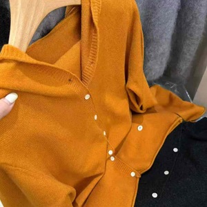 2025秋新款时尚连帽单排扣全羊毛针织开衫女宽松显瘦百搭毛衣外套