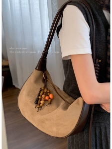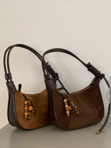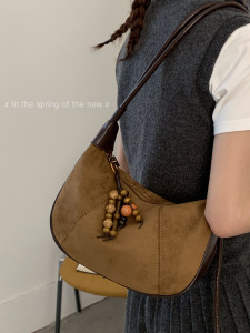 小众复古小众质感腋下包包女2025新款麂皮绒饺子包简约百搭单肩包