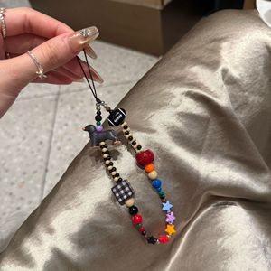 自制格纹方块腊肠小狗手机壳挂链ins风美拉德手机挂绳ccd挂饰防丢